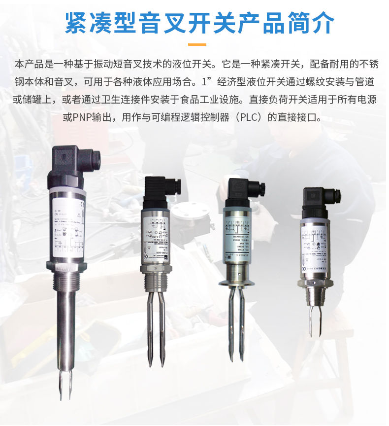 本產品是一種基于振動短音叉技術的液位開關。它是一種緊湊開關,配備耐用的不銹鋼本體和音叉,可用于各種液體應用場合。
