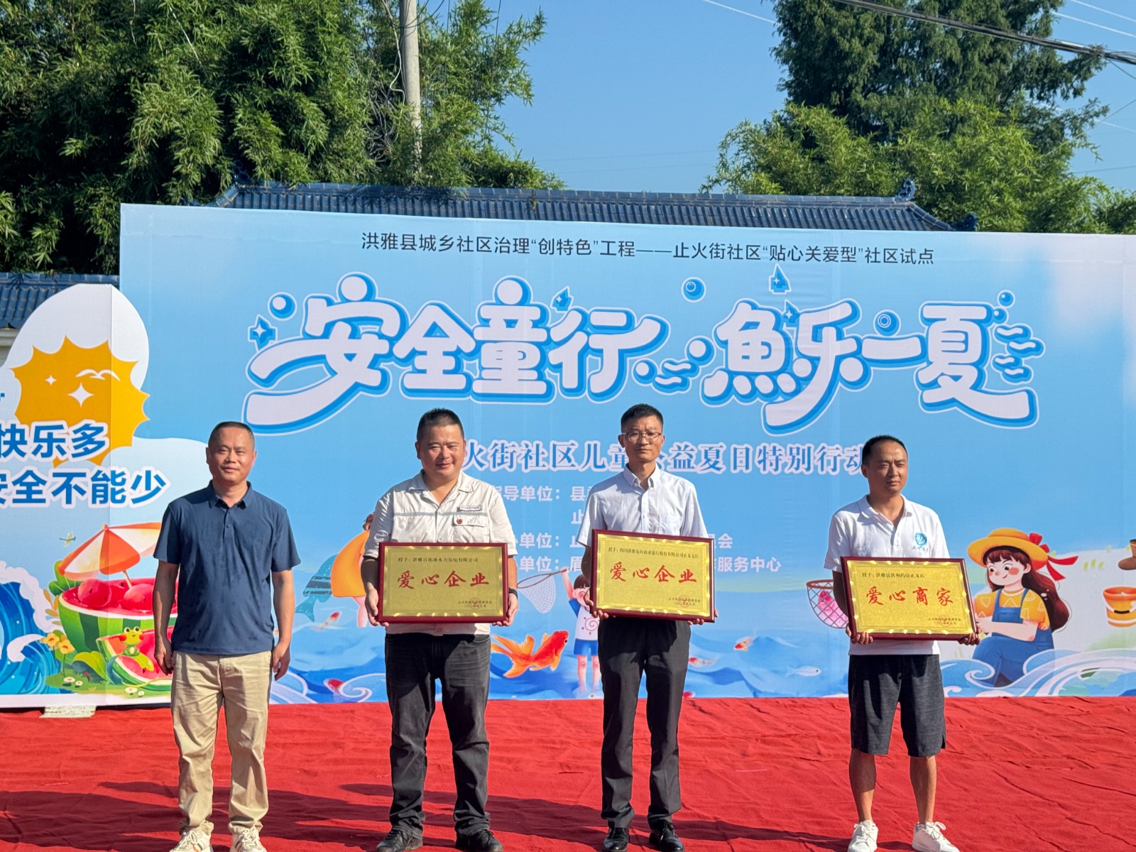 近日,止戈鎮(zhèn)止火街社區(qū)組織開展“歡樂童行?魚樂一夏” 活動(dòng)。活動(dòng)中,止戈鎮(zhèn)止火街社區(qū)為四川洪雅百花灘水力發(fā)電有限公司授予“愛心企業(yè)”榮譽(yù)稱號(hào)。
